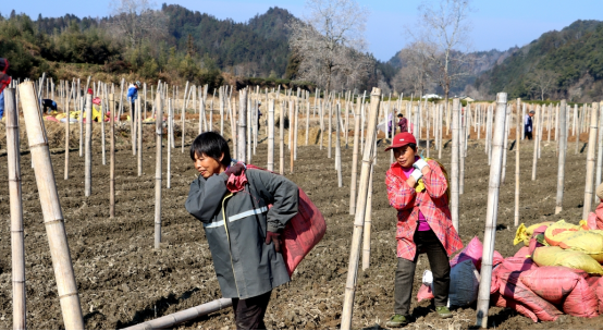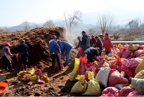 地已翻耕好,村民们忙着将一代代堆料运到田头,铺在垄上……1月3日上午,天寒地冻,阳光朗照,地上还凝结着厚霜,人们还沉浸元旦小长假氛围中,但走进休宁县溪口镇矶溪林草种植家庭农场的基地内,却是一派繁忙火热景象,到处是忙碌的身影。20多位村民正在农场负责人吴荣华指导下,忙着栽种竹荪。