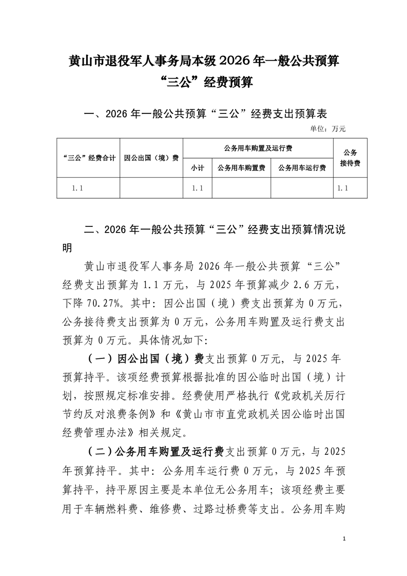 黄山市退役军人事务局本级2026年一般公共预算“三公”经费预算.doc