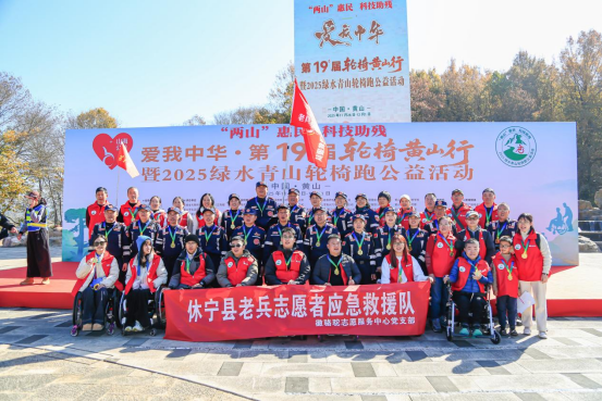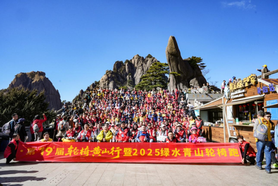 “爱我中华·第19届轮椅黄山行暨2025绿水青山轮椅跑”公益活动于11月29日至30日在黄山市成功举办,来自全国各地的约200位残友,在黄山市蓝天救援队、黄山市山越救援队、休宁县老兵志愿者应急救援队等9支志愿服务队的全程悉心守护和陪伴下齐聚黄山,有92位残友满怀激情地登上黄山之巅,在迎客松旁拍下纪念照片,展现了残疾人群体自立自强、不屈不挠的精神风貌。