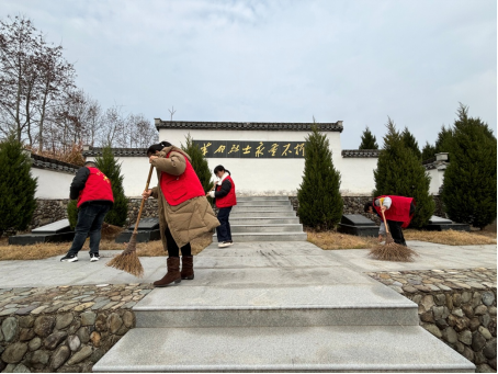 活动现场,志愿者们手持工具清扫墓区落叶杂草,细致擦拭墓碑、为碑文描红补色,让英烈印记愈发清晰庄重。全体人员肃立默哀、鞠躬致敬,深切缅怀革命先烈捍卫家国的不朽功勋。