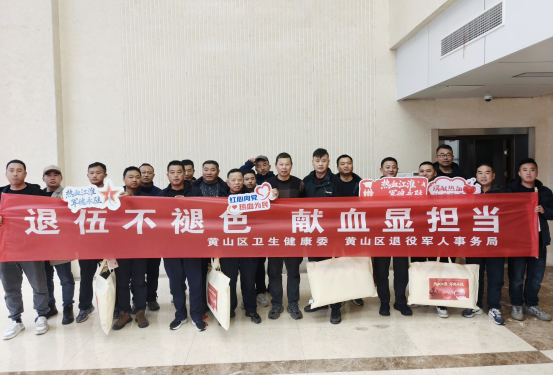 近日,黄山区退役军人事务局联合黄山区卫生健康委员会以“退伍不褪色 献血显担当”为主题,组织开展退役军人、消防救援人员无偿献血专场活动。37名退役军人和消防人员齐聚献血现场,两支队伍组成“热血守护队”,以实际行动践行初心使命,用滚烫热血传递大爱。