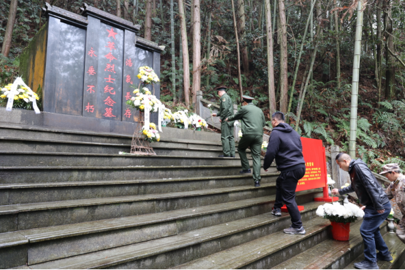 青山埋忠骨,史册载功勋。在2026年清明节来临之际,为深切缅怀革命先烈的丰功伟绩,传承红色基因。3月26日,徽州区人武部、区退役军人事务局、徽州一中师生代表等,前往岩寺镇石岗村小练革命烈士纪念墓,庄严举行“追寻2026·清明祭英烈”活动。