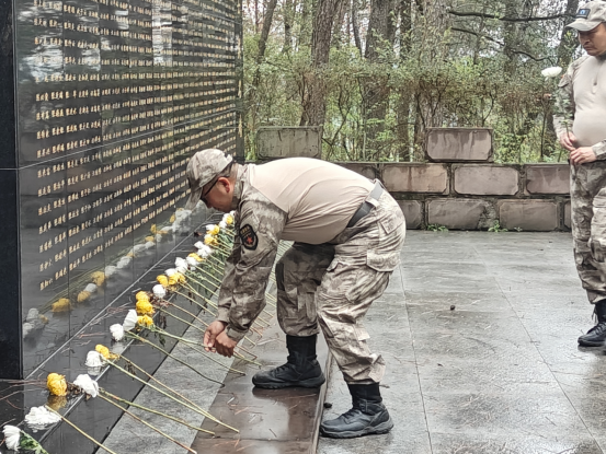 苍松翠柏掩映下,革命烈士纪念碑巍然矗立,庄严肃穆。全体人员整齐列队,肃立默哀,向为民族独立、人民解放、国家富强和人民幸福英勇献身的烈士们致以最深切的缅怀和最崇高的敬意,并依次献上鲜花,瞻仰烈士纪念设施,表达对革命先烈的无限敬仰。一束束鲜花承载着对先烈的崇敬与追思,一个个动作彰显着对英雄的敬仰与赤诚。