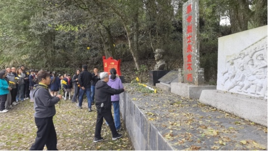 活动在庄严肃穆的文堂革命烈士墓前拉开帷幕。社区退役军人志愿服务队与两校师生一同,向长眠于此的王瑞烈士及其他革命先烈敬献鲜花,鞠躬默哀。