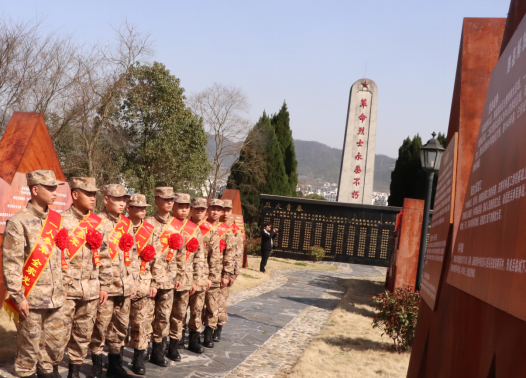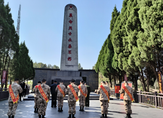 春日的黟县革命烈士纪念碑广场,翠柏青青,苍松肃立,革命烈士纪念碑巍然屹立,“革命烈士永垂不朽”八个大字格外醒目。全体新兵整齐列队,神情庄重,静默肃立。活动在庄严的中华人民共和国国歌中拉开序幕,全体人员脱帽向为民族独立、人民解放和国家富强、人民幸福英勇献身的烈士默哀,向烈士敬献花篮,深切缅怀革命先烈的丰功伟绩和崇高精神。