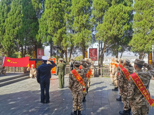 “我是中国人民解放军军人,我宣誓:服从中国共产党的领导,全心全意为人民服务,服从命令,忠于职守……”全体新兵在烈士纪念碑前面向军旗庄严宣誓,激昂的声音响彻天际。