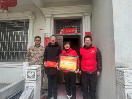 近日,黟县渔亭镇退役军人服务站联合镇武装部开展立功受奖送喜报进光荣门活动,将3名现役军人获评“四有”优秀士兵的喜报与慰问金,亲手送到军属手中,让党和政府的关怀与尊崇直达军属心间。