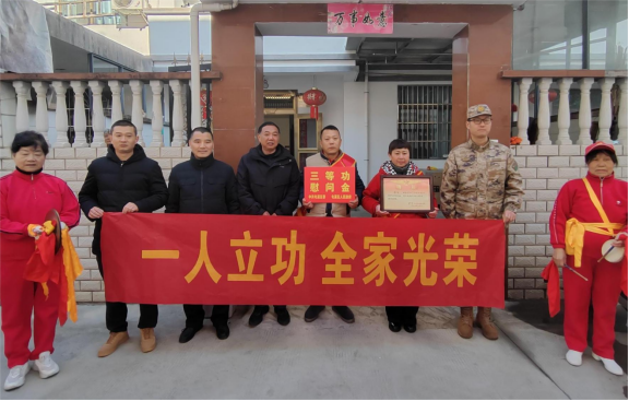 拥军优属情意浓,喜报上门暖人心!2026年1月14日上午,区人武部联合区退役军人事务局、昱东街道办事处组成慰问组,专程赶往立功军人张超家中,将2025年度“三等功”喜报和慰问金交到他与家属手中。这份实打实的荣誉加持,让整个家庭都洋溢着自豪与荣光!