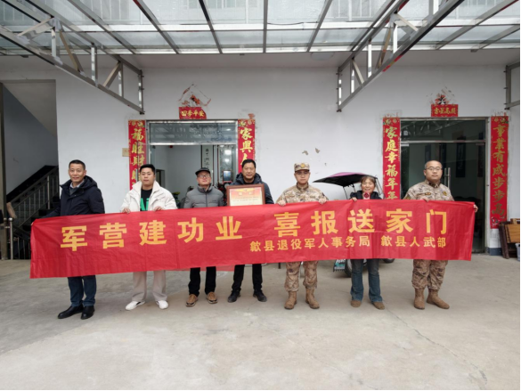 春意正浓,喜气盈村。2月10日上午,由歙县人武部、歙县退役军人事务局及北岸镇联合组成送喜报队伍,赴歙县北岸镇七贤村,为在部队荣立三等功的现役军人吴文韶家庭举行隆重而简朴的喜报送达仪式。