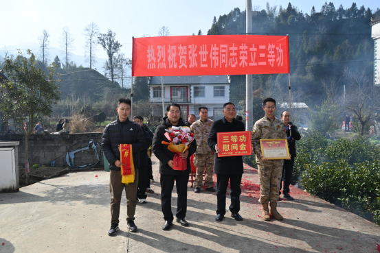 2月11日,南方农历小年,祁门县城乡处处洋溢着节日的喜庆氛围。当天上午,县退役军人事务局联合有关闪里镇和若坑乡党委、政府,先后为荣立三等功的军人陈文超、张世伟家庭送上立功喜报和慰问金,让军人军属在小年之际感受到别样的荣光与温暖。