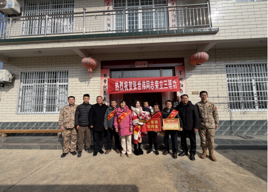 2026年2月11日,祁门县退役军人事务局联合箬坑乡政府,为荣立三等功的军人家庭上门送立功喜报,大力营造从军报国的浓厚社会氛围。送喜报队伍高举荣誉横幅,伴着喜庆锣鼓与鞭炮声穿行街巷,将满载荣光的喜报郑重送到军属手中。