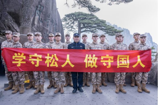 3月15日,黄山区即将入伍的新兵们登上黄山之巅,走进“中国好人”胡晓春工作室,学习习近平总书记给“中国好人”的回信,听守松人胡晓春说守松故事。